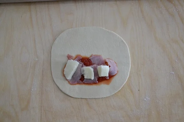- Riempite i panzerotti con pomodoro e mozzarella, e anche salumi a piacere. Si può anche evitare il pomodoro e riempire con mozzarella e salumi, a vostro piacimento.