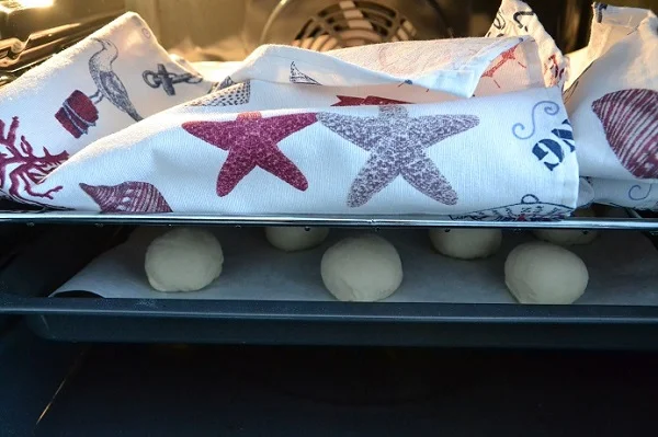 - Coprite la placca del forno con la carta da forno e mettete le palline distanziate e coperte, dentro il forno chiuso a lievitare.
